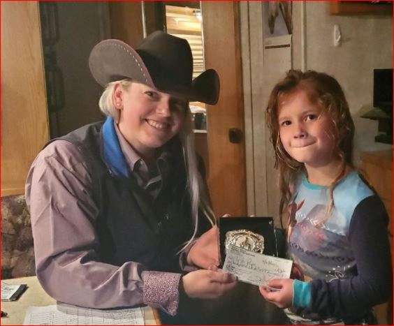 Deidra Moran has been ramrod in renovation of the Odin Rodeo Grounds now hosting a number of Western activities. One of them is the Sidewinders Bulls & Barrels series featuring children’s mutton busting. Dory Ruppe received a buckle and check as a mutton busting winner.