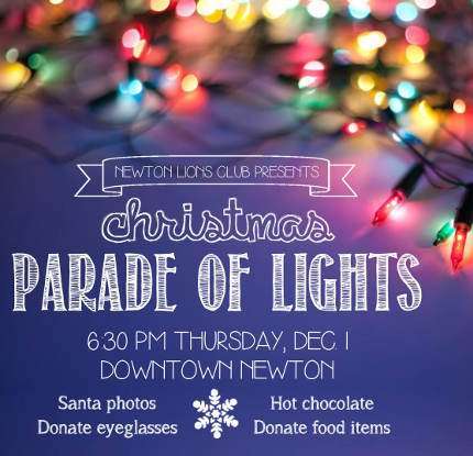 Parade of Lights hosted by the Lions Club will be at 6:30 P.M. December 1 in downtown Newton on Main Street. Santa will be...