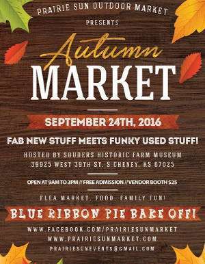 The Prairie Sun Out Door Market will be held 9 A.M. – 3 P.M. September 24 at Souder’s Farm Museum, 39925 West 39th Street. This is where Fab new stuff meets Funky used stuff. Those attending will enjoy a day of flea market, food, family fun and the Blue Ribbon Pie bake off. For more information, can be found at www.prairiesunmarket.com.