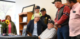 In Kindred Hospice’s small office on Tuesday morning, Kindred staff, volunteers and family members surrounded David Bartlett, a U.S. Navy veteran of the Vietnam Conflict and Michael Juarez, a U.S. Army veteran of the same conflict, to celebrate their upcoming May 9 Honor Flight to Washington, D.C.