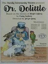 Dr. Doolittle will be presented at the Family Community Theatre. The show is based on the stories of Hugh Lofting. Show times are 7:30 P.M. September 29-October 1 and 3 P.M. October 2. Tickets are available at Absolutely Home, Hays Sight and Sound, Sarah’s Catholic Book Store, familycommunitytheatre.com and one hour before the show at the Flag Theatre, 310 N. Main.