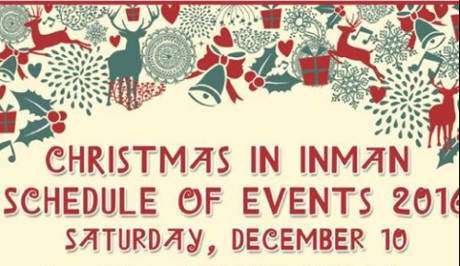 Christmas in Inman will be held on Saturday, December 10. The evening events start at 4 P.M. with the Christmas Market at St. Peter’s UCC. Other events include Open houses at local businesses, The Senior Center will be serving Chili and Chicken & Noodles from 5-7 P.M., a live Nativity at Lambert Park and Santa at the Museum from 6-8 P.M.