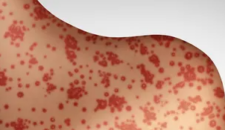 Common measles symptoms include a high fever, cough, runny nose, watery eyes and rash. The virus can be deadly, particularly in young children.