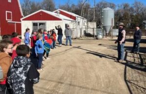AG IN THE CLASSROOM: The Bornholdts are supporters of McPherson County’s Ag in the Classroom program. Recently, Tim, Terri, son Cody and daughter-in-law Ashley hosted second graders at the farm for hands-on education about the calving process. (COURTESY OF THE BORNHOLDT FAMILY)