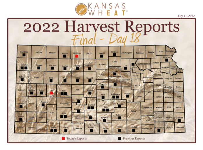 This is day 18 of the Kansas Wheat Harvest Reports, brought to you by the Kansas Wheat Commission, Kansas Association of Wheat Growers and the Kansas Grain and Feed Association.