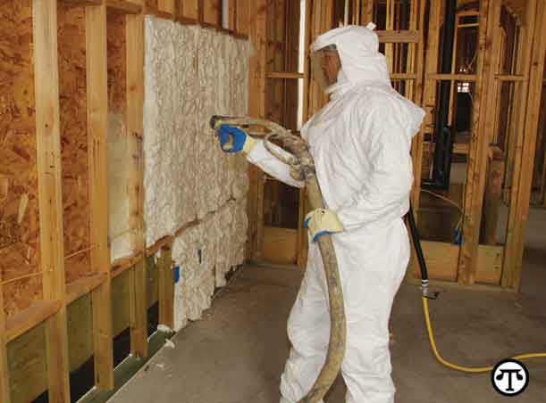 Spray polyurethane foam insulation serves as not just insulation but can also seal air leaks and act as a moisture barrier. By sealing cracks, seams and joints, spray foam insulation can provide a major boost for improving energy efficiency as it is estimated that approximately 30 percent of energy lost from heating and cooling in buildings and homes is due to air leaks. Applied as a liquid, spray foam expands, able to seal leaks and improve a building’s energy envelope.