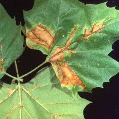We are starting to see anthracnose on sycamore. Anthracnose is a fungal disease favored by cool, wet weather. Young leaves may wither and turn black. On older leaves, look for brown areas that follow the major veins of the leaves. In some cases, the petiole (leaf stem) is infected, which causes leaf drop. The leaf may look perfectly fine, so look for browned areas on the petiole.