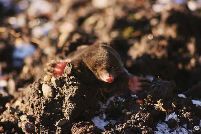 Though moles spend most of their time underground, the damage they cause above ground is all too visible. Meandering paths of upheaved soil are evidence of the small mammals foraging for food. Some tunnels may be abandoned soon after being built while others are travel lanes and used for a longer period of time. Even though moles do not feed on plant matter, they can still cause damage by disturbing roots and uprooting small plants.