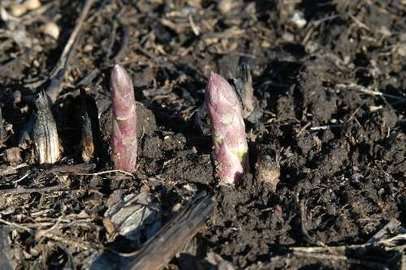 Herbicides can be used before asparagus emerges. Glyphosate (Roundup, Killzall) will kill weeds that are actively growing, and the preemergence herbicide trifluralin can be used to kill weed seeds as they germinate. Trifluralin is found in several products, but not all of them list asparagus on the label. Those that do have asparagus on the label include Miracle-Gro Weed Preventer Granules and Monterey Vegetable and Ornamental Weeder. Mulch can also be used to keep weeds from invading.