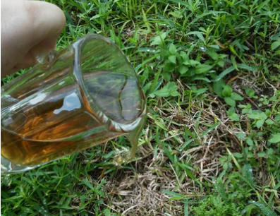 Beer has lots of fermented sugars and nutrients. A dead patch will absorb the sugars and nutrients thus helping the soil below. The beer acts as a fertilizer and provides nutrients to new grass growth. The beer will strengthen the grass and neutralize the nitrogen in pet urine. (Woo hoo, science!) Beer eliminates fungi, as well.