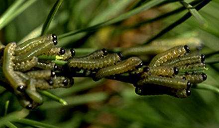Sawfly larvae are not caterpillars, therefore, the bacterial insecticide, Bacillus thuringiensis subsp. kurstaki (sold as Dipel) will not directly kill sawfly larvae. Dealing with sawfly larvae involves hand-picking (you can wear gloves if you wish) or dislodging larvae from plants by means of a forceful water spray. If necessary, there are a number of insecticides that may be applied to suppress European pine sawfly populations including: acephate (Orthene), azadirachtin, carbaryl (Sevin), spinosad (Captain Jack’s DeadBug Brew and Conserve), and any pyrethroid insecticide (e.g., bifenthrin, cyfluthrin, and lambda-cyhalothrin). Be sure to read the insecticide label to make sure that sawflies are listed. For more information regarding European pine sawfly management contact your county or state extension specialist. (Raymond Cloyd)