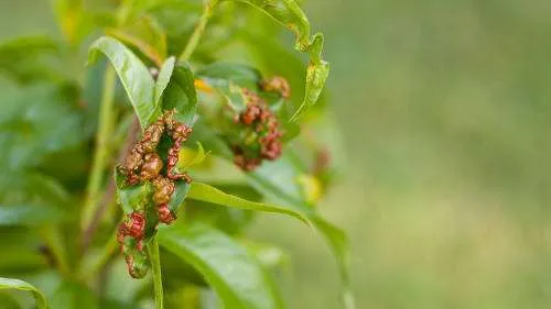 Peach leaf curl is a fungus disease that causes developing peach leaves to become puckered and distorted and show a reddish-green hue. A similar disease called plum pocket may develop on American and sand hill plums. Plum pocket results in formation of distorted, light green, bladder-shaped fruit. Asian and European plums are not susceptible to the local strain of plum pocket. Unfortunately, it is too late to control any of these diseases with fungicides this year.