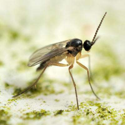 Fungus gnats are small insects (1/8 to 1/10 inch long) that are common in high-organic-matter houseplant soils that are kept moist. Though adults are mosquito-like in appearance, they do not bother humans or pets. It is actually the larvae or maggots that can injure plants by feeding on the roots. Symptoms include sudden wilting, loss of vigor, poor growth and yellowing leaves. Use of sterile media and avoiding over watering can help prevent infestations. Existing infestations can be controlled Bacillus thuringiensis v. israelensis (Gnatrol). (Ward Upham)