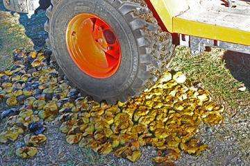 Note that walnut hulls contain a dye that will stain concrete, your hands or about anything else it touches. Wear gloves as the stain is almost impossible to remove.
