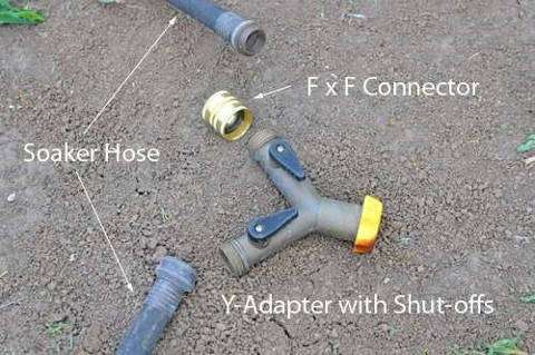 It is also helpful if the Y-adapter has shut off valves so the volume of flow can be controlled. Too high a flow rate can allow water to run off rather than soak in.