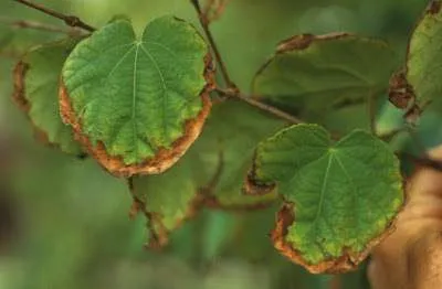 Scorched leaves turn brown or, in some cases, turn black from the edges and between the major veins. If severe, the leaf may drop. Leaves may be affected over the entire tree or may be affected only on one side. White pines are also prone to this condition due to the delicacy of the needles.