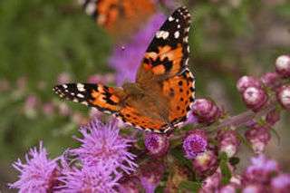 Painted lady adults feed on the nectar of many different plants in flower including sage (Salvia spp.), stonecrop (Sedum spp.), butterfly bush (Buddleia spp.), and coneflower (Echinacea spp.).