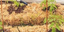 To plant, dig small pockets or holes into the straw and set plants into the holes. Fill the holes with soilless medium and cover the plant’s roots. Water the base of the plant to settle the medium around the root system.
