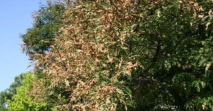 Control: Chemical control is not typically necessary. Treatment is ineffective if applied this time of year when the webs and brown leaves are already present. For more information about Mimosa webworm visit: KSRE Publication Mimosa Webworm