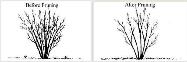 Rejuvenation is the most severe type of pruning and may be used on multi-stem shrubs that have become too large, with too many old branches to justify saving the younger canes. All stems are cut back to 3- to 5-inch stubs. This is not recommended for all shrubs but does work well for spirea, forsythia, pyracantha, ninebark, Russian almond, little leaf mock orange, shrub roses and flowering quince. (Ward Upham)