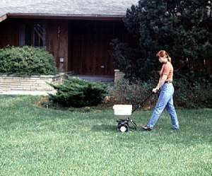 Buffalograss requires the least nitrogen of all lawn species commonly grown in Kansas. It will survive and persist with no supplemental nitrogen, but giving it 1 lb. N per 1,000 sq. ft. will improve color and density. This application should be made in early June. For a little darker color, fertilize it as described for zoysiagrass in the previous paragraph, but do not apply more than a total of 2 lb. N per 1,000 sq. ft. in one season. Buffalograss tends to get weedy when given too much nitrogen. As with zoysia, slow-release nitrogen is preferable, but fast-release is also OK. As for all turfgrasses, phosphorus and potassium are best applied according to soil test results because many soils already have adequate amounts of these nutrients for turfgrass growth. If you need to apply phosphorus or potassium, it is best to core aerate beforehand to ensure the nutrients reach the roots. (Ward Upham)