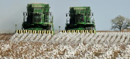 John Deere changed the game for the cotton industry when it developed the stripper round baler and picker round baler in 2015, allowing a seamless transition for farmers to convert harvested cotton straight into large round bales with the same machine.