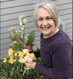 Glennys delivers the flowers and can exchange and recycle vases for the next delivery. “We provide whatever is in season or blooming,” Glennys said. That means she gets to plant lots of different flowers, such as sunflowers, zinnias, daffodils, cosmos, daisies, tulips, iris, peonies and more. She also grows supplementary foliage such as lemon and cinnamon basil, bells of Ireland, dianthus, sweet rocket, larkspur, ageratum and others.