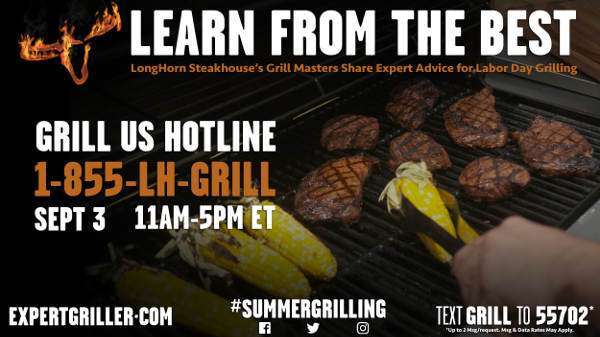 Labor Day is the last official grilling holiday of the summer, and LongHorn Steakhouse’s expert Grill Masters are on-hand to help guests prepare at home. For the third and final time this summer, at-home grillers can dial into the Grill Us Hotline for immediate help from grilling experts.