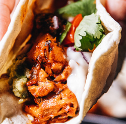 - Black-bean tacos with salsa and avocado.