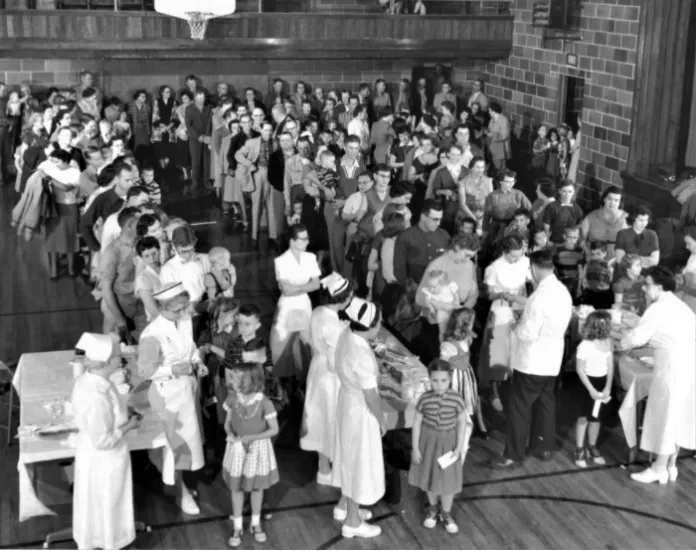 That event, sponsored by what was then known as the National Foundation for Infantile Paralysis (now the March of Dimes), received widespread media coverage. So did a parade that took place a couple of weeks later when residents received their second doses of the vaccine.