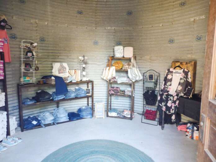 “I was riding my gravel bike in the Flint Hills, and as my wife would tell you, my brain’s always going,” he says. “I was going by all these grain bins. Since I’d bought another dilapidated building, which fell down and was an empty lot at that point, I thought, ‘What if we put grain bins in there as a pop-up flea market or farmers market or outdoor market.’”