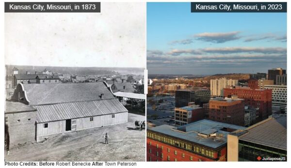 “West of Manhattan in the 1873 photos, you see essentially no trees,” Peterson says. “To me, the contrast is just astounding.”