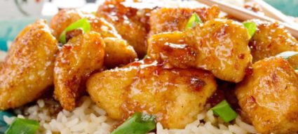 - Our Bourbon Chicken goes great with a bowl of our delicious fast fried or white rice.