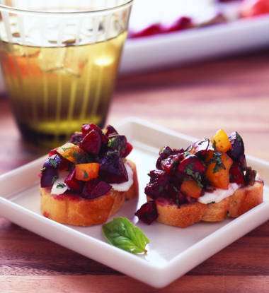 Top each baguette with thin slice of cheese, 1 tablespoon cherry mixture and sprinkle of sliced basil. Serve warm or cold.