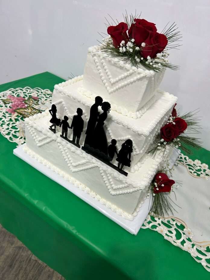 A beautiful wedding cake to celebrate the marriage of Susan and Ervin.