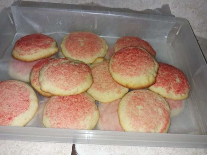 I will share the cookie recipe that Ervin and Susan made for church services on Sunday. It’s his mom’s recipe that she uses. They mixed gelatin and sugar, then dipped a glass into that mixture and pressed it on each cookie before they baked it.