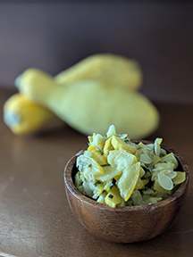 Even if ours hadn’t perished in the weed jungle, summer squash is not one of those things we ever think there is a real surplus of, contrary to popular opinion. It’s so versatile, you might find it anywhere on our table these days — which is nice, because it’d be hard to find it in our garden.