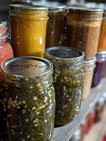 A vision of the jalapeño jelly sitting on the shelves downstairs came to mind as I carried in my pepper loot. I call it jelly, but it’s more like jam, and actually it’s more like syrup. It failed to set up — but on purpose this time.