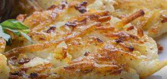 If you prefer to shred fresh potatoes, you’ll need about 3-1/2 cups. You may have to add a bit more or less flour to the mixture based on the moisture content of your potatoes. We suggest cooking one pancake and tasting it to make sure the mixture is perfect before cooking them all. If it’s too thick, add a tablespoon or so of water, too thin, add more flour.