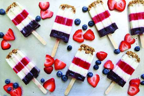 For final layer, add 1 tablespoon blueberry puree and 3 blueberries to each mold. Freeze until solid. Keep frozen pops in molds until ready to eat. Run each mold under lukewarm water for approximately 10 seconds to loosen and remove frozen pops. Pops can be made 1 day in advance.