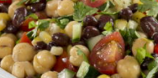 Hosting a party or attending a potluck? Break out the pita chips and set out a bowl of this Summer Party Salad. This diabetic-friendly salad is full of color, taste, and nutrition ’cause it’s loaded with a variety of delicious summer veggies!