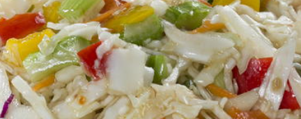 - In a large bowl, combine coleslaw mix, celery, bell peppers, and jalapeno pepper.