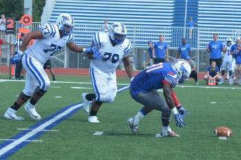 The No. 16 Blue Dragons earned their second-straight victory over a nationally ranked opponent in unconventional fashion as a home-opening crowd of 3,500 saw a 21-12 victory over the No. 6 Reivers, the first in three tries for the Blue Dragons against Iowa Western.